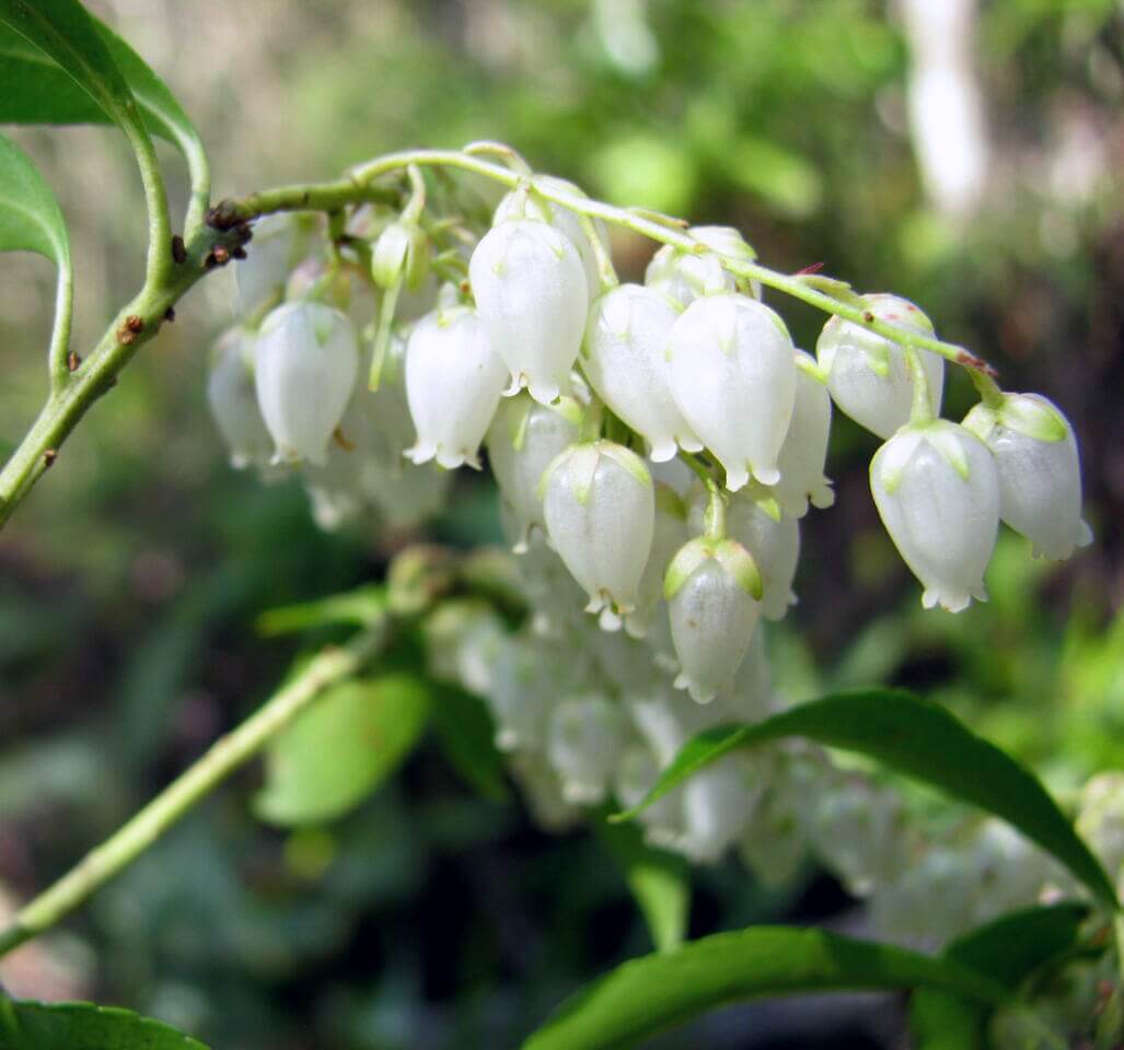 アセビはツツジの仲間ですが、道路によく植えられているヒラドツツジやヤマツツジ、ミツバツツジなどのように大きな花を開くのでなく、釣り鐘状の花を咲かせます。このような花は、ドウダンツツジ、ネジキなども同様です。