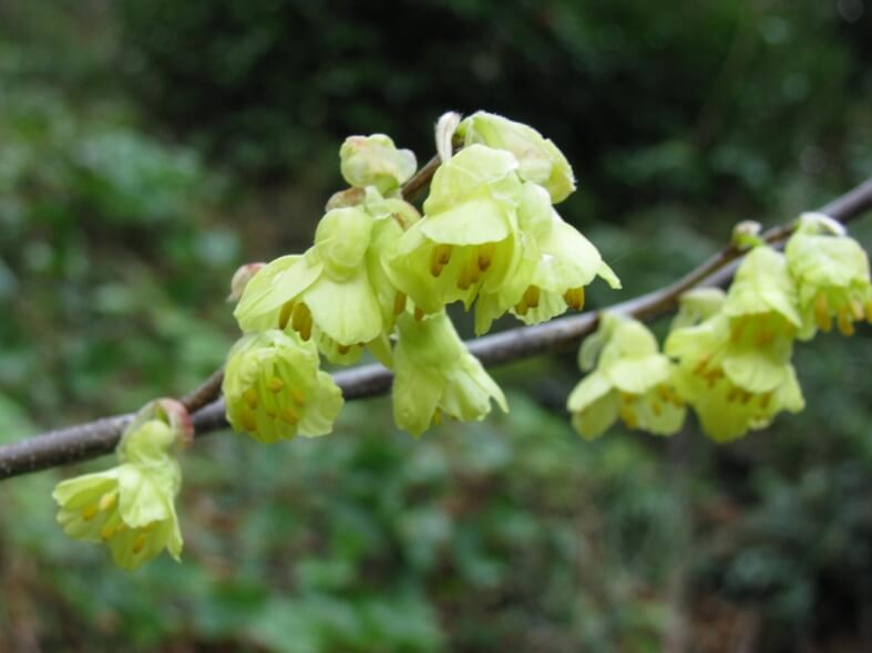 このヒュウガミズキは、3月にこのような、黄色の花を咲かせます。高さは、2~3メートルほどの木です。木々の芽がまだ、ほとんど出ていないころ、この木自身、葉が出るまえに咲き始めるもので、同じなかまのトサミズキよりは、花の穂が小さく、落ち着いた感じのする花です。春の到来を告げるような初々しい黄緑がかった花で、新しい命の季節を告げているような雰囲気があります。