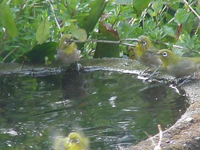 このように同時に4つものメジロが来て水飲みのためにやってくることは珍しいことです。