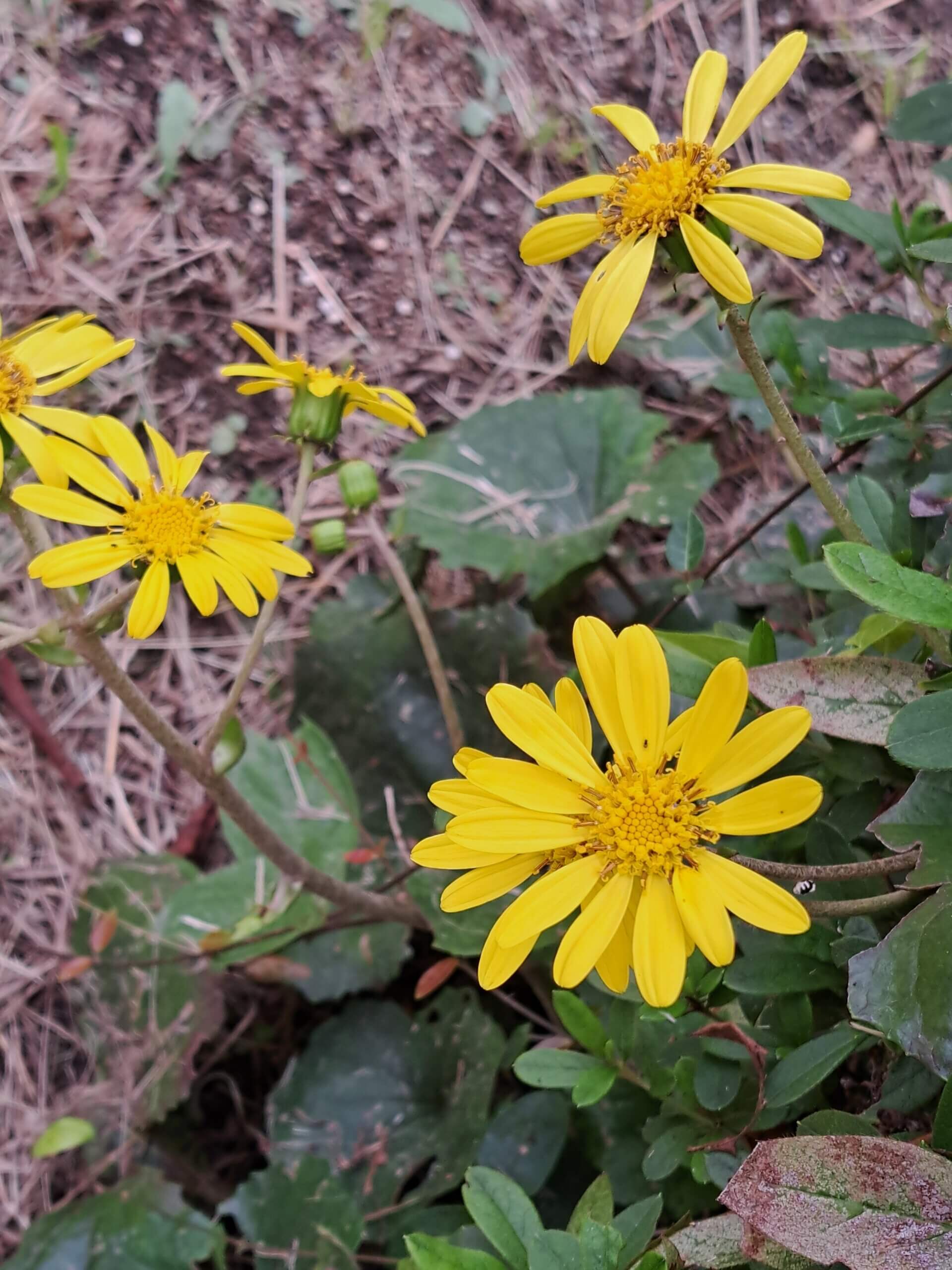 庭の片隅にツワブキの花 そこだけ月の光が集まったようです。